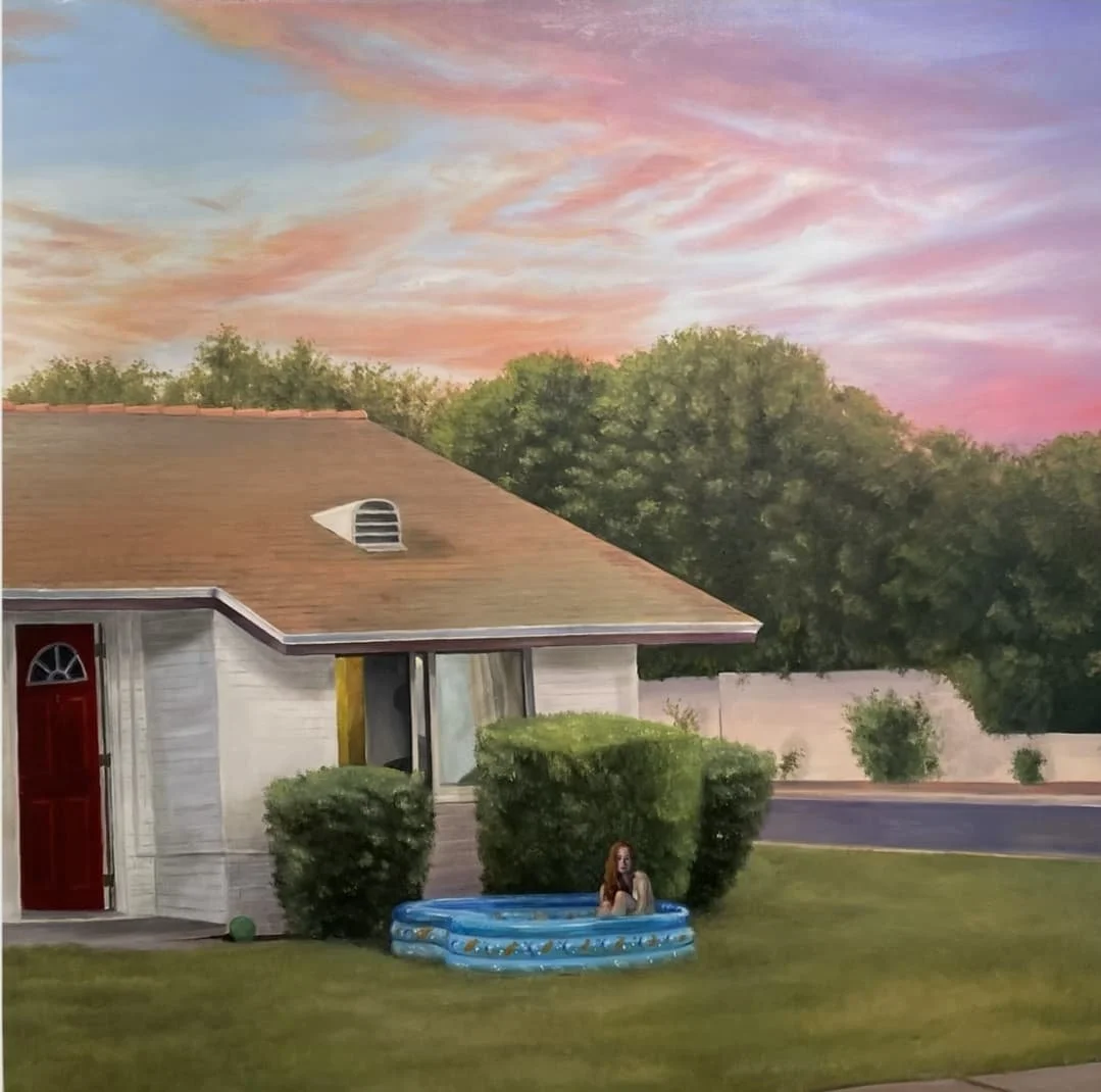 From this experience, I have become more enthralled with the idea of what is going on next door, trying to piece together a story from bits and pieces of an ambiguous narrative. With a focus set within the confines of suburbia and small town life, I combine my personal motifs of memories and combine it with the intrinsically loaded imagery of suburban life. In taking the ideal of the American dream and cascading it with the realities of a cul-de-sac, I have focus on the dualities and contradictions that exist intriguing. The conversation has evolved to bring parallels together: serene and concern, hope and anguish, happiness and depression. In these components a narrative is developed to focus on the uncertainty, to a darker unknown, a loneliness, a solitude, a questioning that resides within these fabricated constructs.